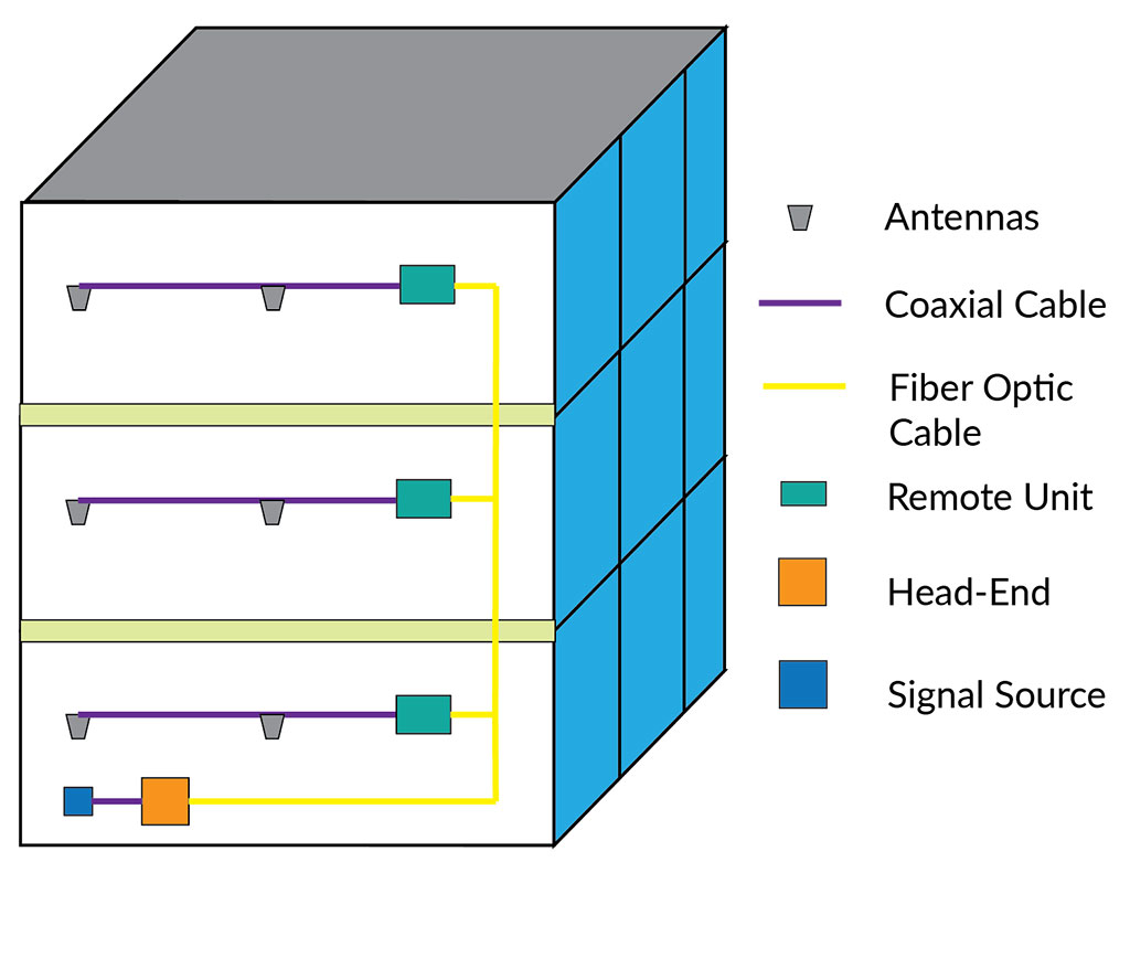 Active DAS are able to distribute signals over larger distances. They are able to do this because they use a hybrid network of powered components such as signal converters and amplifiers to deliver signals to remote units which supply a passive network of coaxial cable and antennas. Active DAS are most commonly used in medium and large applications.
