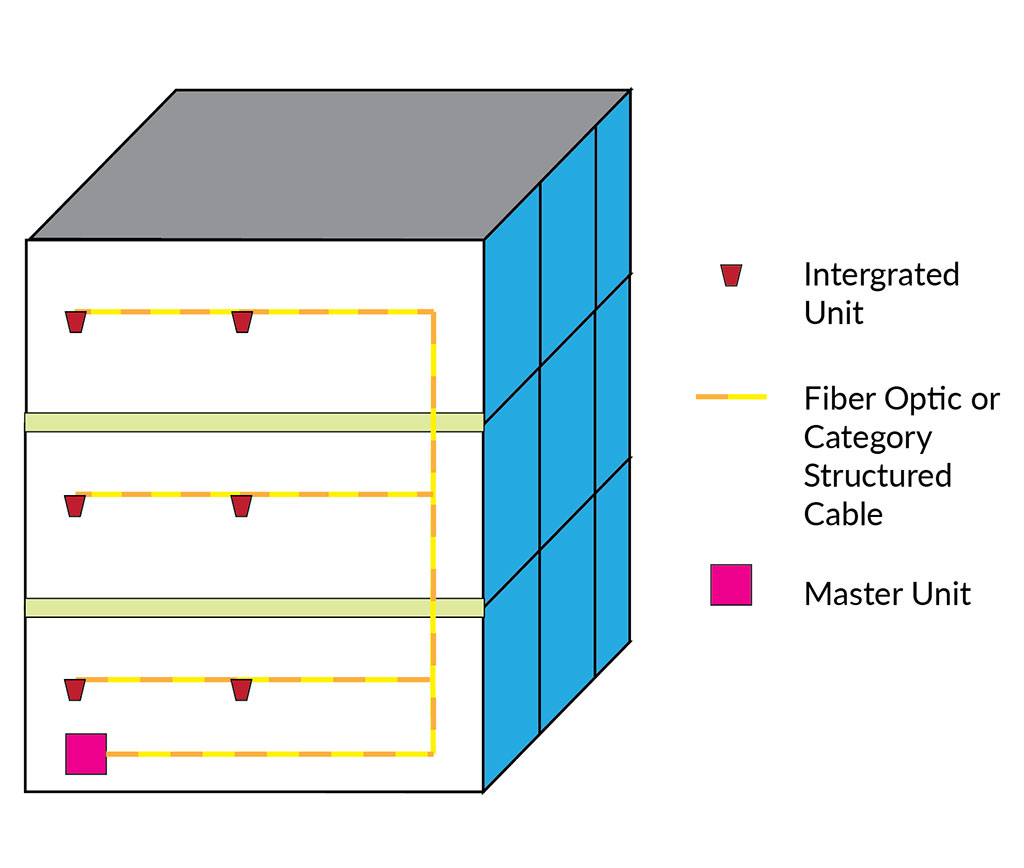 Distributed Small Cells or Distributed Radio Systems distribute signals using components which integrate the network operators’ signal source and antenna into one unit. Each integrated unit is connected via structured cabling or fiber optic cabling to a master unit which is connected directly to the network operator(s) network(s). Each integrated unit uses self-optimizing network (SON) algorithms to optimize coverage, capacity and performance of the system. Distributed Small Cells are scalable and can be used in small, medium and large applications.